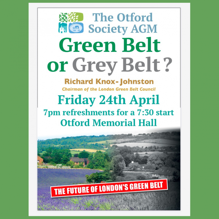 Following the AGM, we are privileged to welcome Richard Knox-Johnston, Chairman of the London Green Belt Council, who will give a talk on the proposed reclassification of parts of the Green Belt as “Grey Belt.” This issue is highly relevant to Otford and the surrounding area, particularly in light of the potential threat posed by large-scale housing developments.